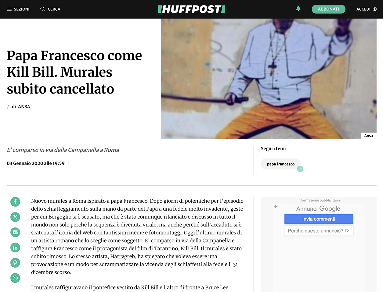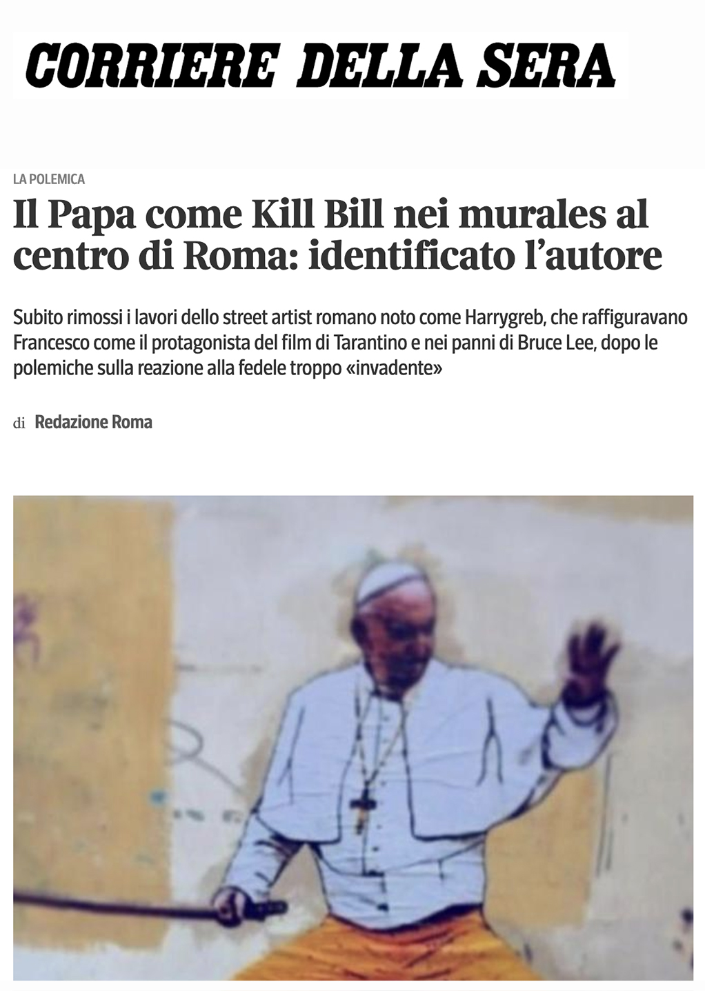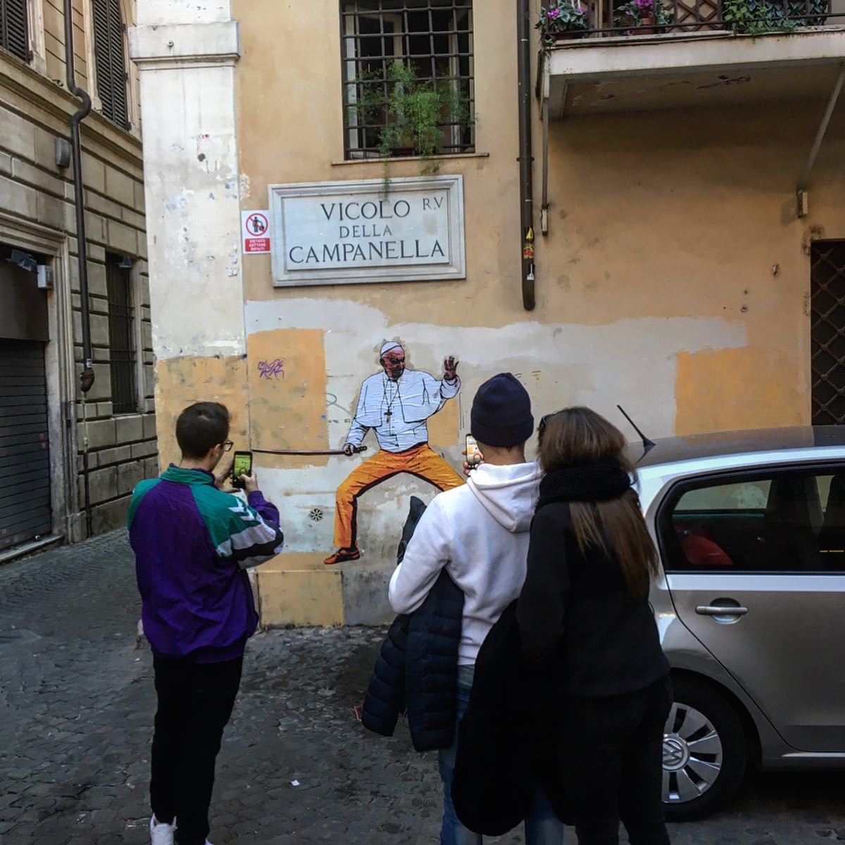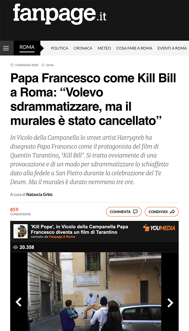 Opera realizzata in Vicolo della Campanella, a poche centinaia di metri da San Pietro, nei primi giorni del 2020; in seguito alle polemiche scaturite la sera dell’ultimo dell’anno in cui il pontefice, durante il Te Deum, aveva avuto un alterco con una fedele di origini asiatiche.